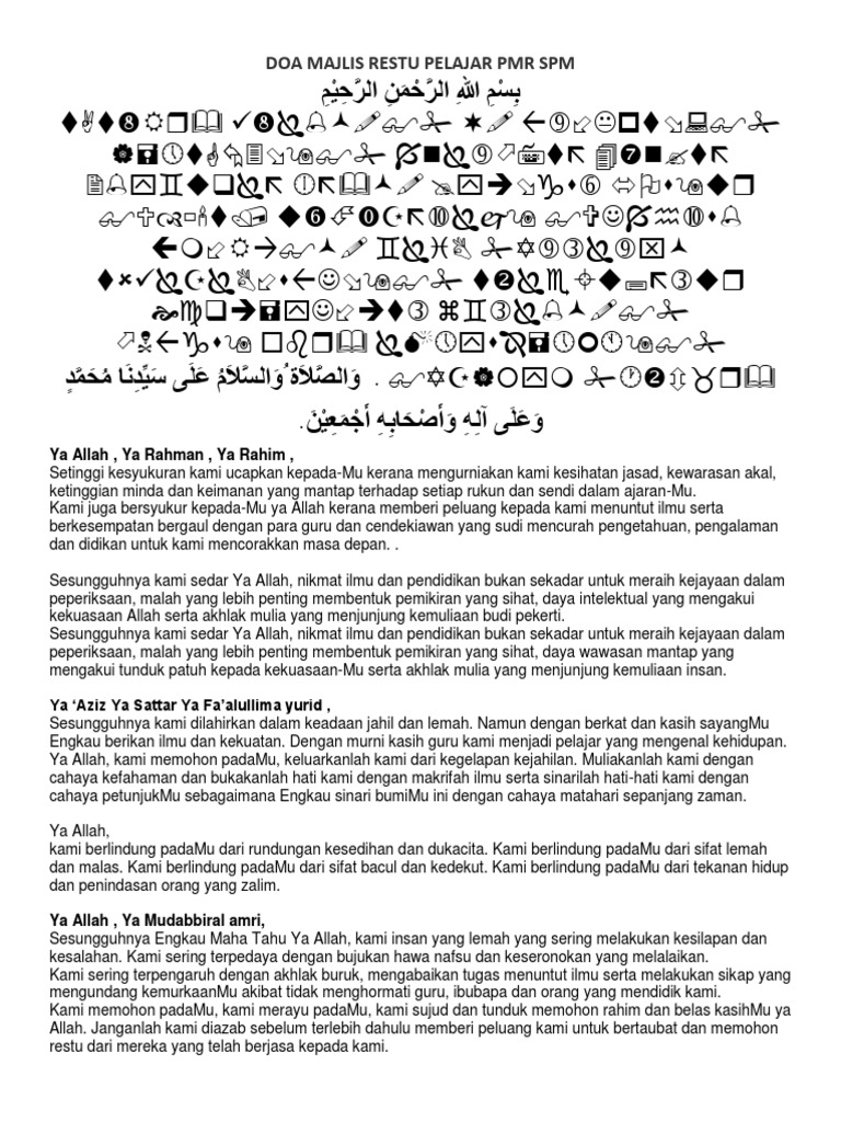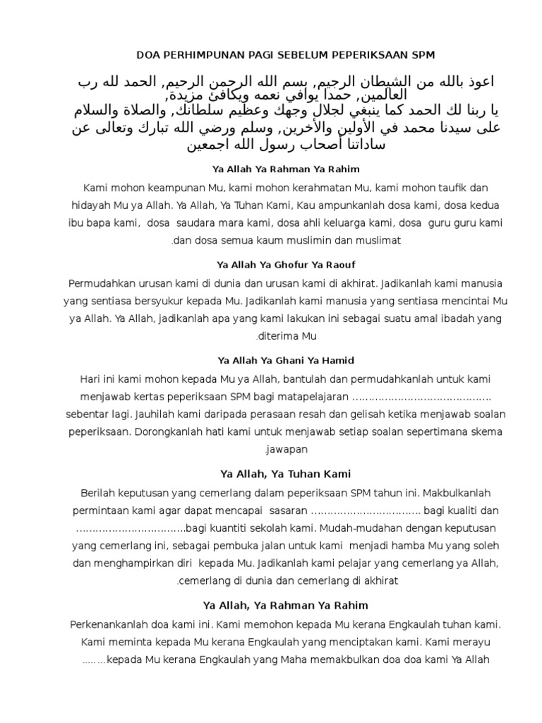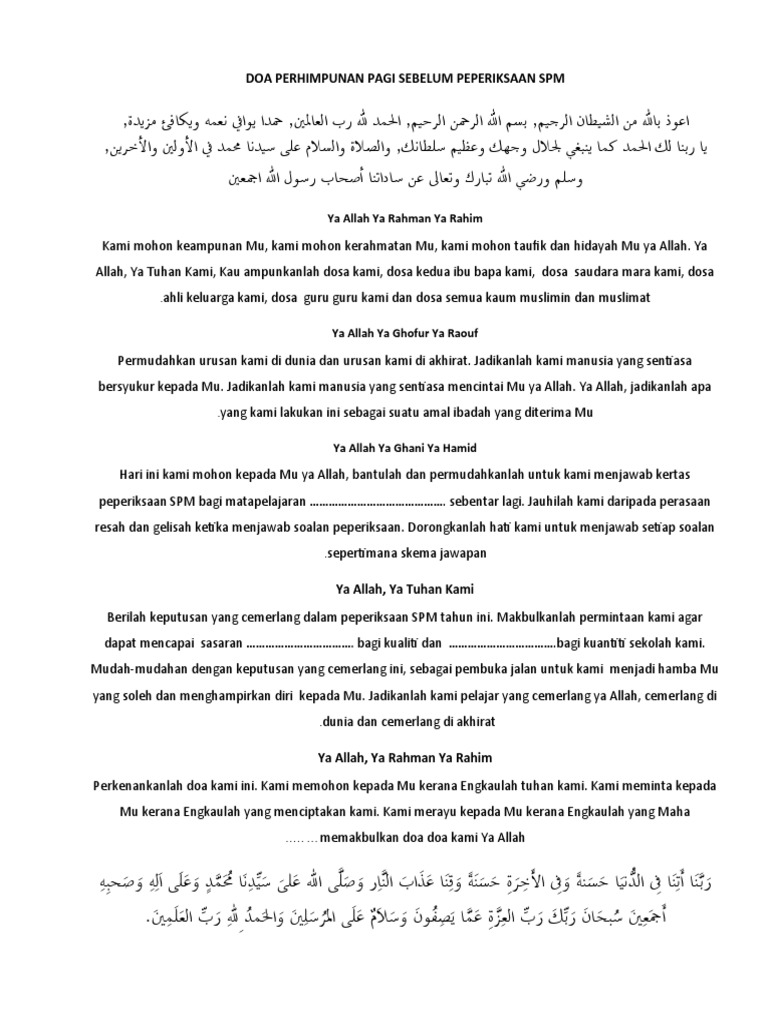 Doa Majlis Restu Pelajar Pmr Spm Edisi Sendiri Pdf